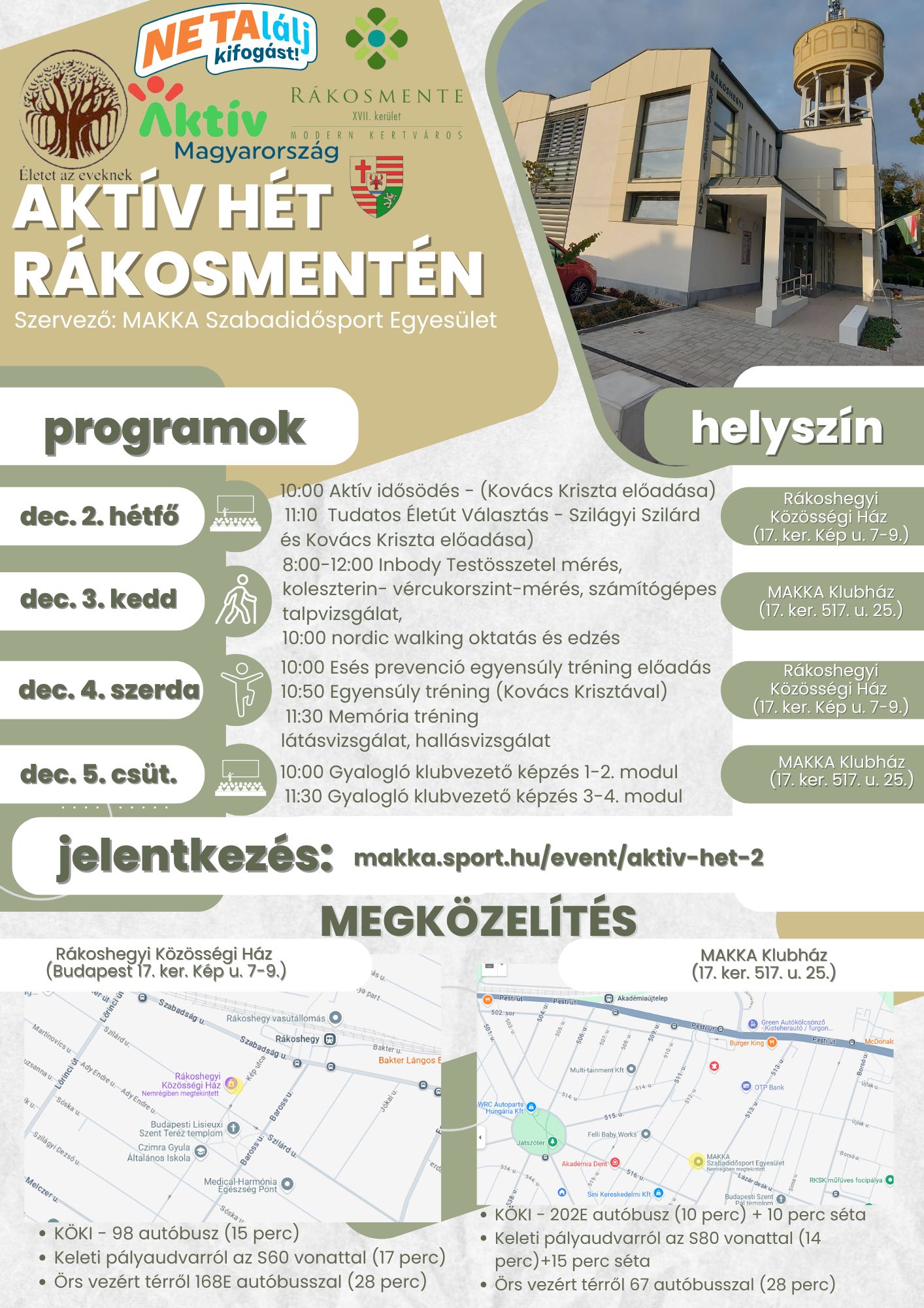 Szeretettel meghívlak benneteket az Aktív Hét programunkra a XVII. kerületbe december 2 é 5. között.